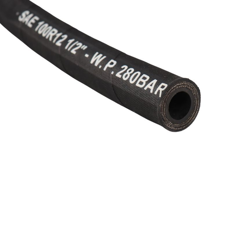SAE 100R12 hydraulic hose consists of three parts: an inner tube of oil-resistant synthetic rubber, reinforcement of four high tensile steel wire spiral layers, and an outer cover of abrasion and weather resistant synthetic rubber. Topa can produce SAE 100R12 hydraulic hoses in a wide range of models and sizes to meet all your needs.