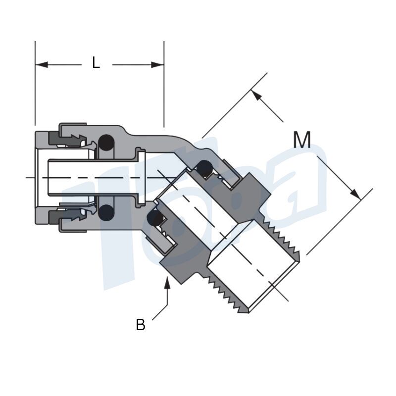 368PTC-04-02 | 1/4*1/8 | 9/16 | 0.68 | 0.91 | Male Elbow Swivel 45° |