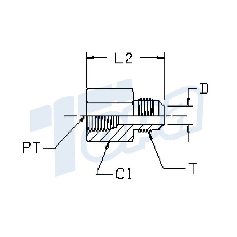 TUBE FITTING PART # | TUBE O.D. (inch) | T TUBE END UN/UNF-2A | PT PORT THD NPTF | C1 HEX (inch) | DRILL (inch) | L2 (inch) |