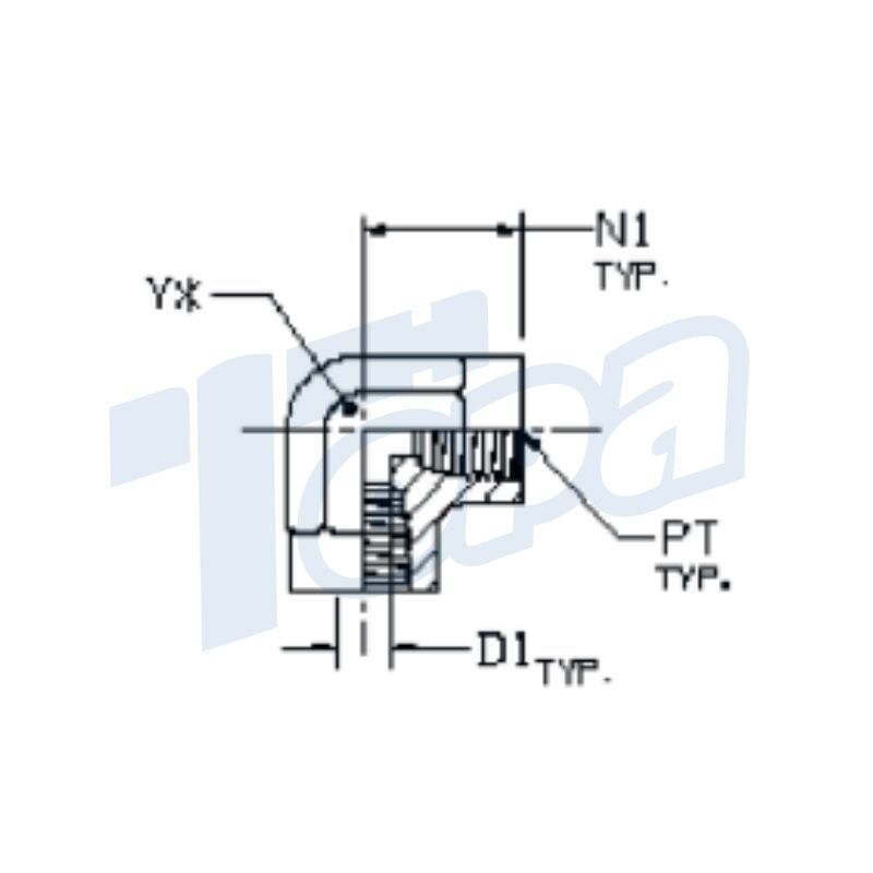 TUBE FITTING PART # | PT PORT THD NPTF | REF D1 DRILL (inch) | N1 (inch) | Y (inch) |