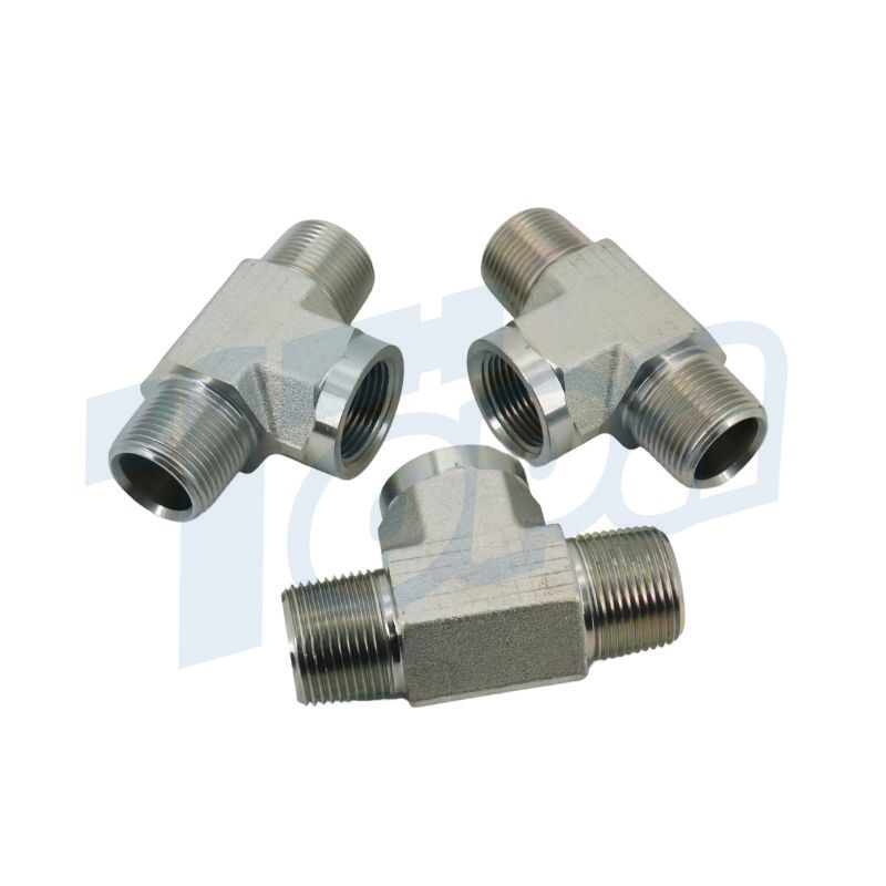 5601 NPT tee adapters have a female NPT thread and male NPT threads on the ends. And they are used to connect hydraulic pipes and tubes. Those fittings are made of high-quality metal materials, durable and versatile. So if you have any problems with hydraulic pipe fittings, please contact us!