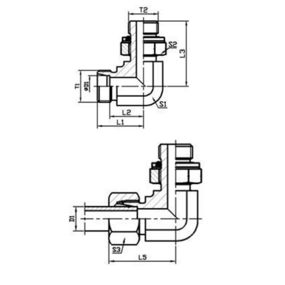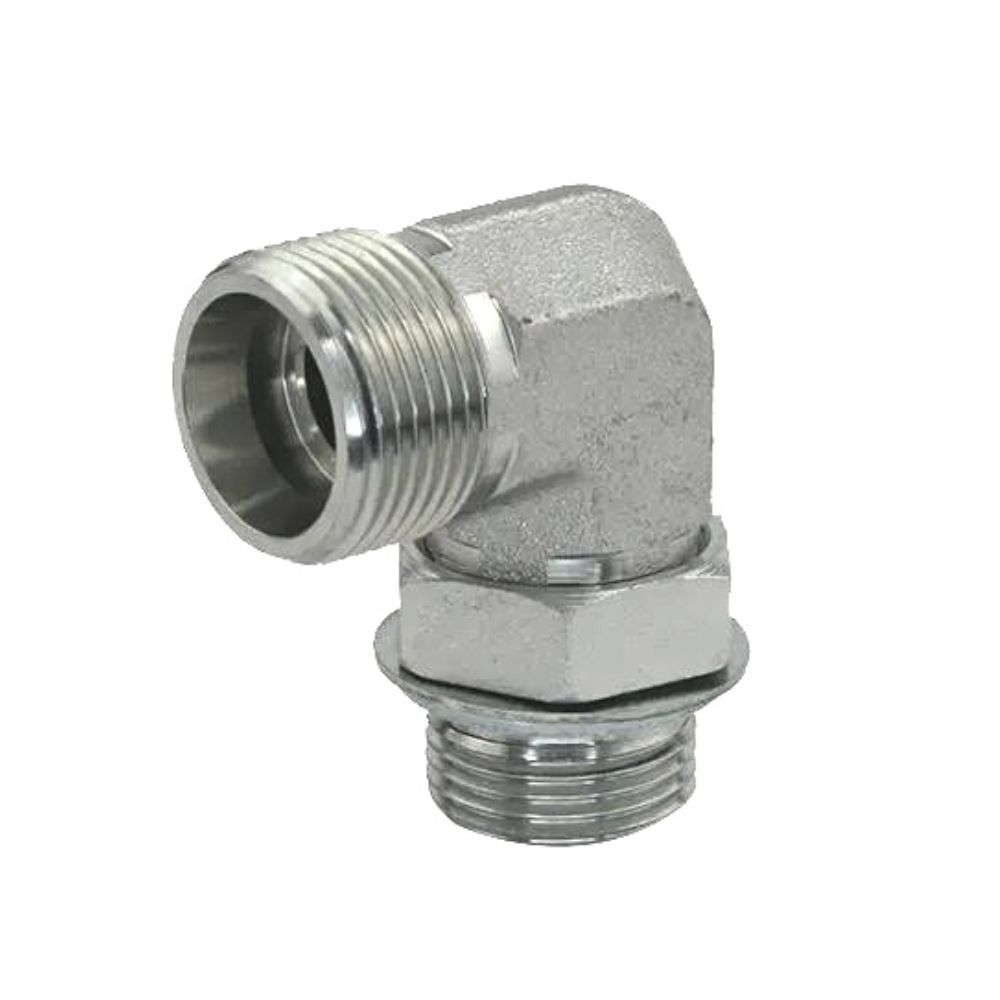 1CG9/1DG9-OG metric to BSP fitting is a hydraulic 90-degree adapter that has a male 24-degree cone metric thread, and a 60-degree cone BSP thread.