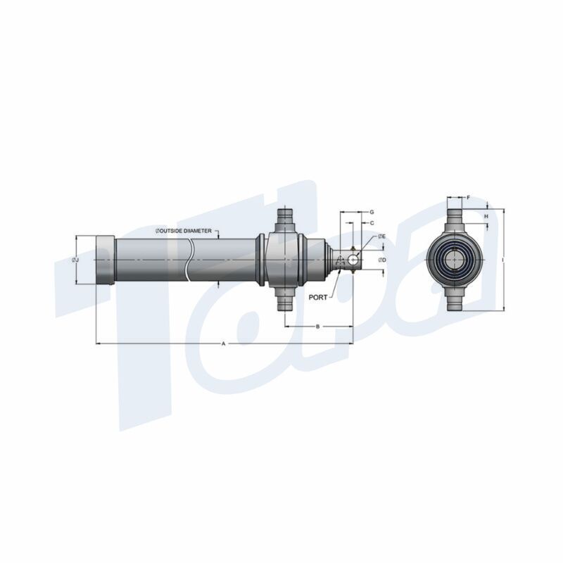 | PART No. | STROKE | OUTSIDE DIAMETER | A | B | C | D | E | F | G | H | I | J | PORT |