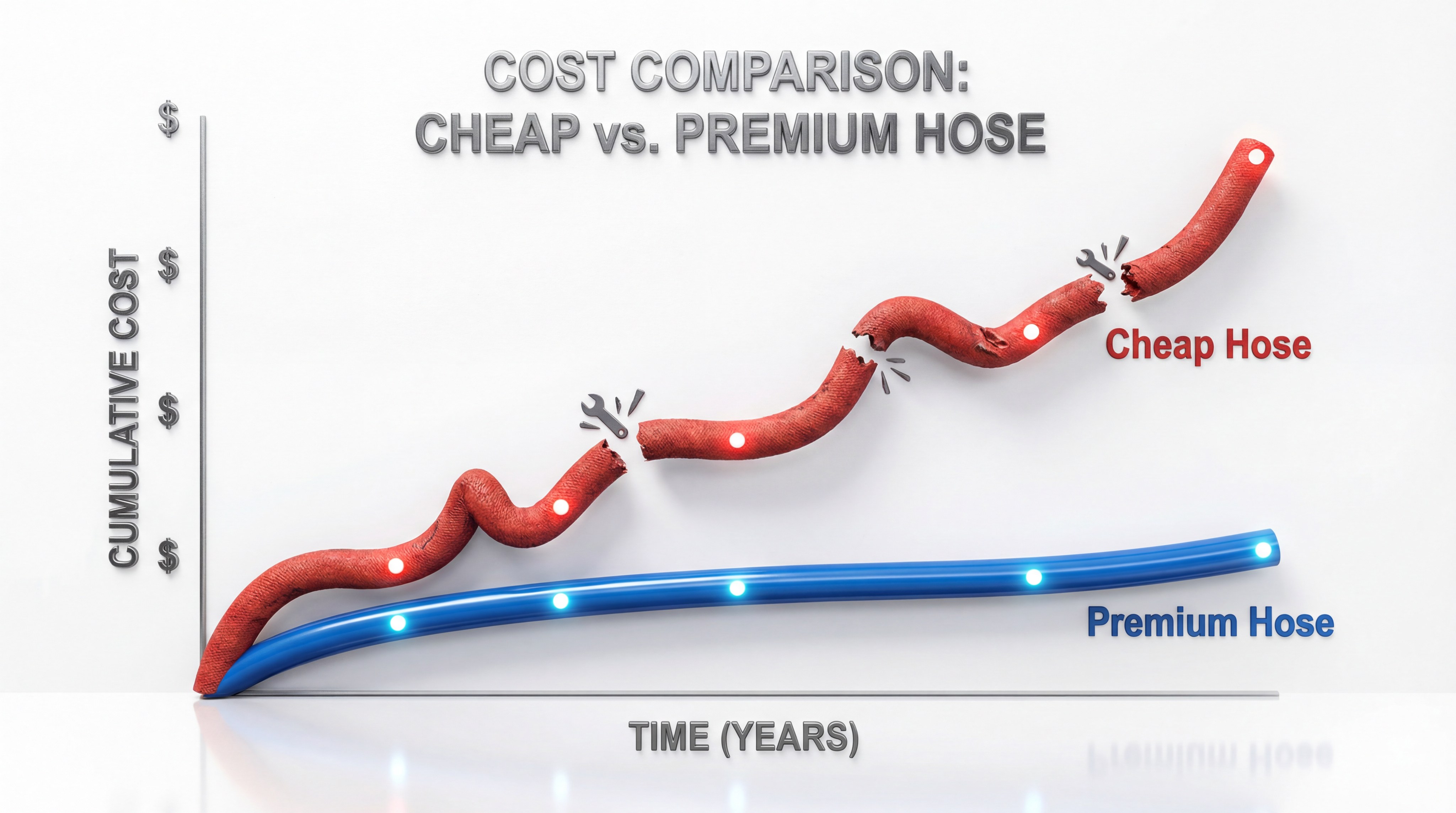 When you buy a low-grade hose, you are committing to a cycle of recurring costs that exceed the original purchase price. Beyond the part itself, you are paying for shipping, handling, and the lost efficiency of a machine that isn’t running at 100%.